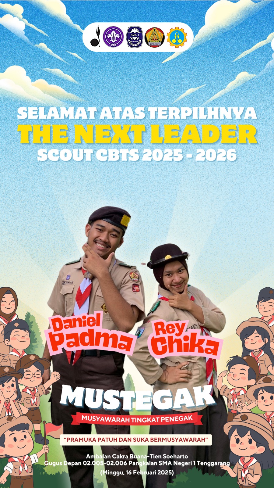 Dalam proses pemilihan yang berlangsung demokratis, Daniel Padma dari kelas XI G terpilih sebagai Pradana putra, sementara Rey Chika dari kelas XI C terpilih sebagai Pradana putri. Mereka berdua diharapkan mampu membawa Ambalan Cakra Buana – Tien Soeharto ke arah yang lebih baik dan aktif dalam berbagai kegiatan kepramukaan. Dengan kepemimpinan baru ini, diharapkan gerakan Pramuka di SMAN 1 Tenggarang semakin berkembang dan berkontribusi dalam pembentukan karakter siswa.